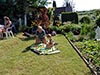 Wypoczynek na własnej działce z wnukiem. I pomyśleć, że w miejscu tego trawnika rosły 2,5 metrowe pokrzywy.