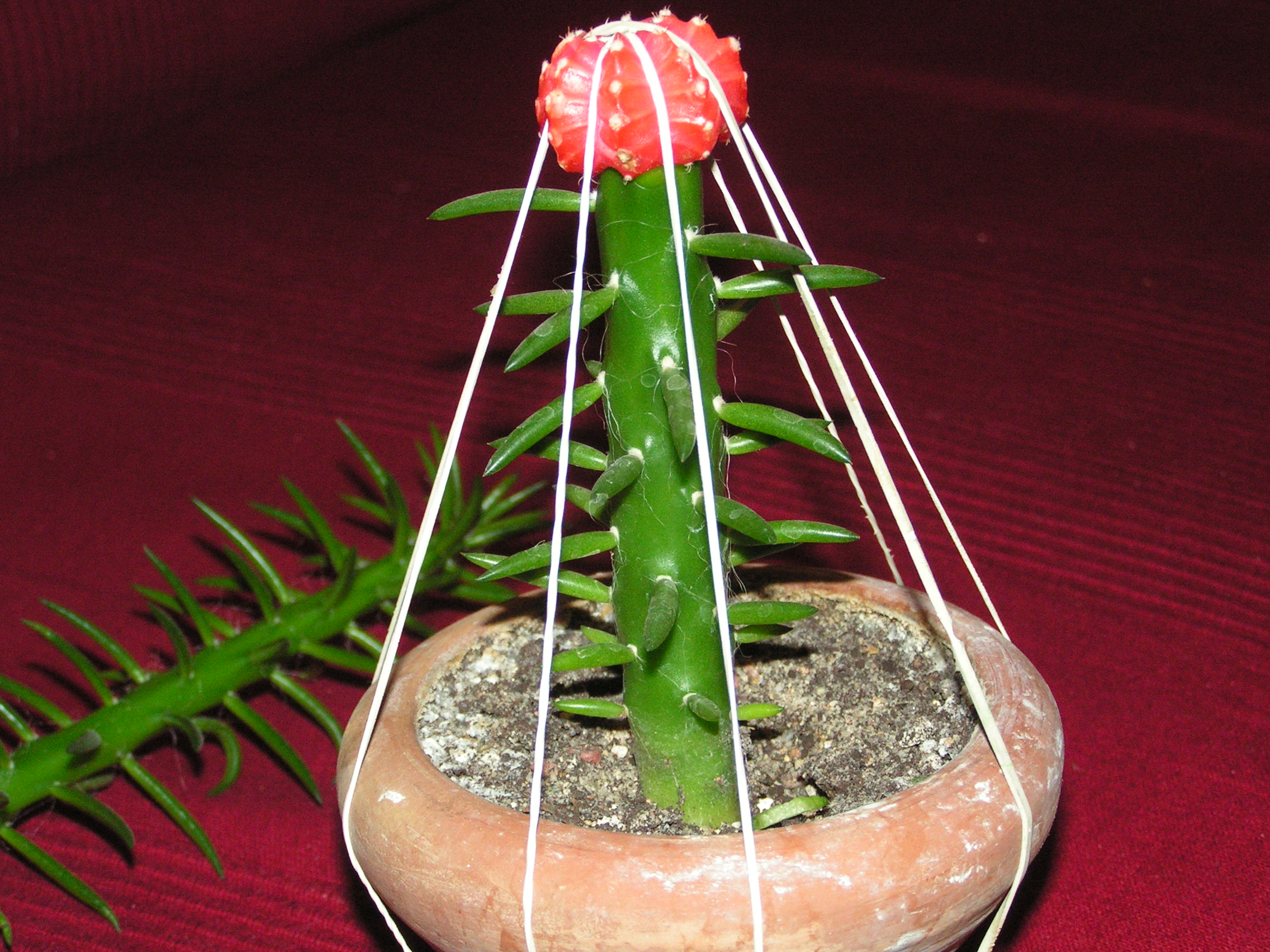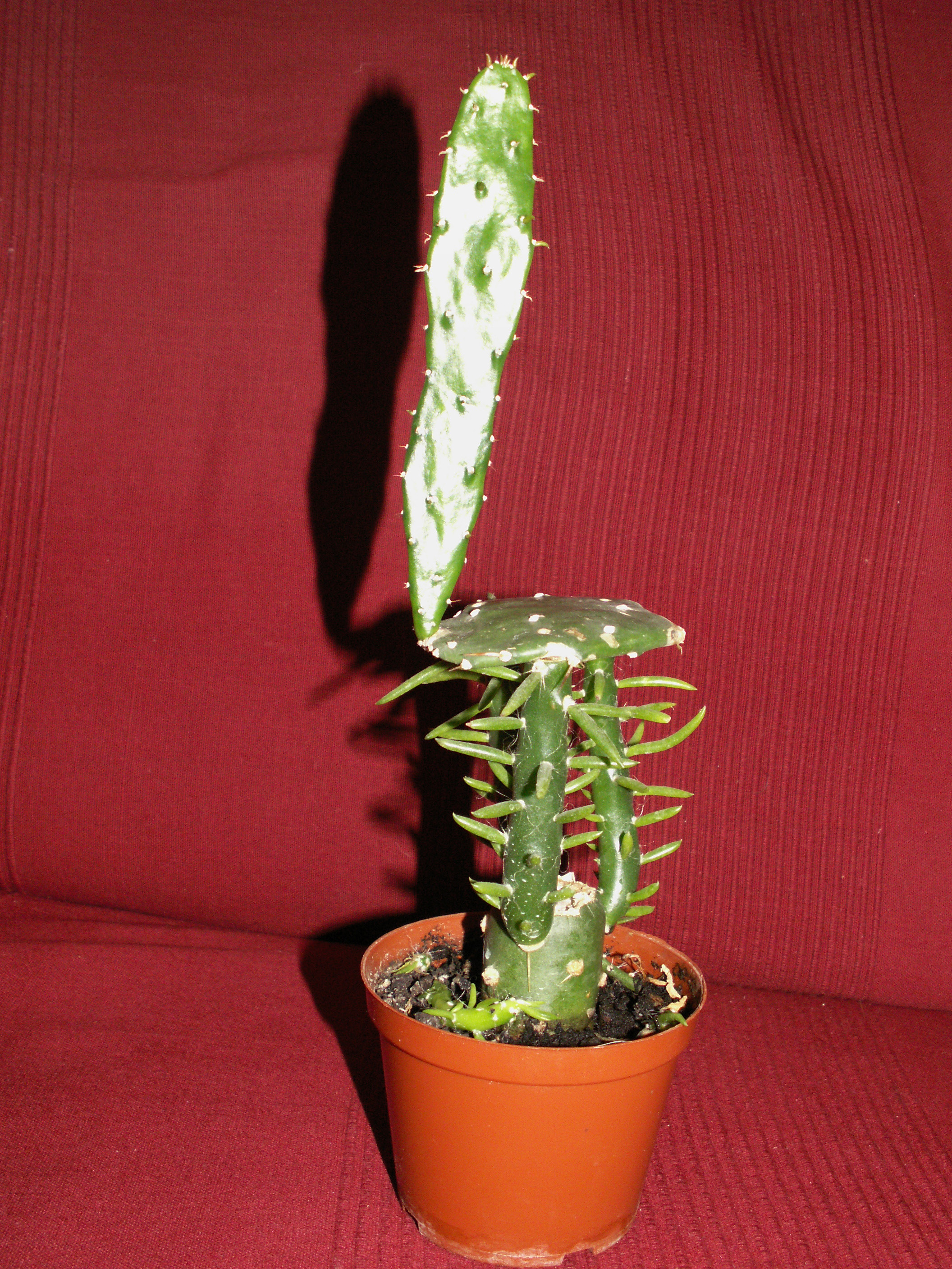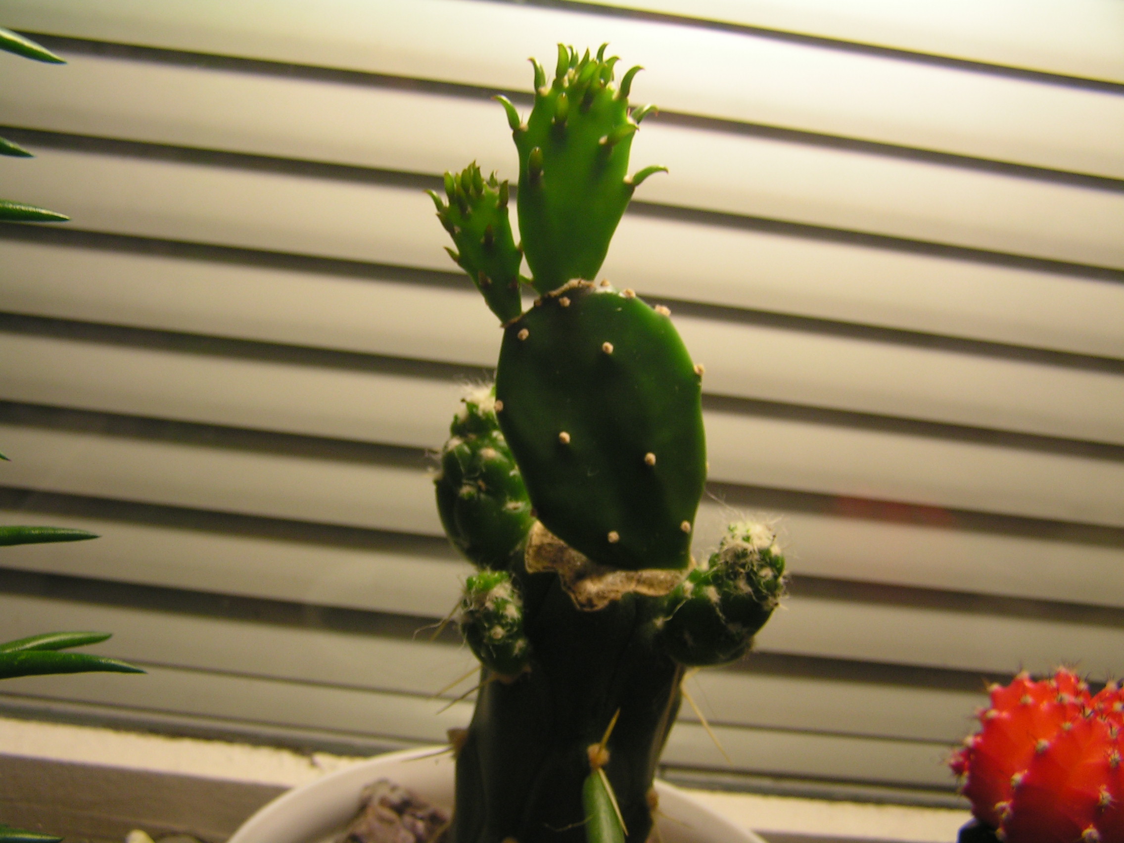 Eksperymentalna konstrukcja - na 3 odrostach Opuntia cylindrica zaszczepiona poziomo Opuntia vulgaris z odrostem pionowym.