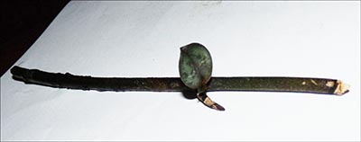 Zastosowanie gumek-recepturek do przyciśnięcia szczepionego zrazu.