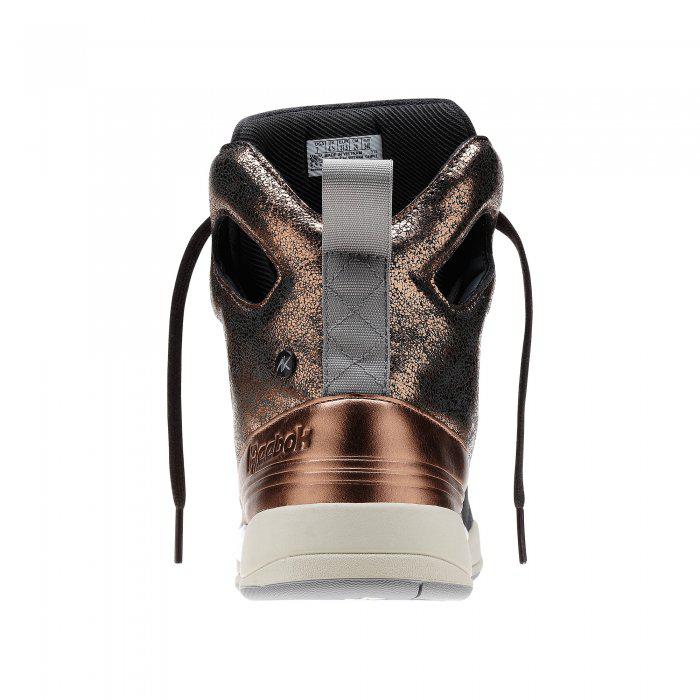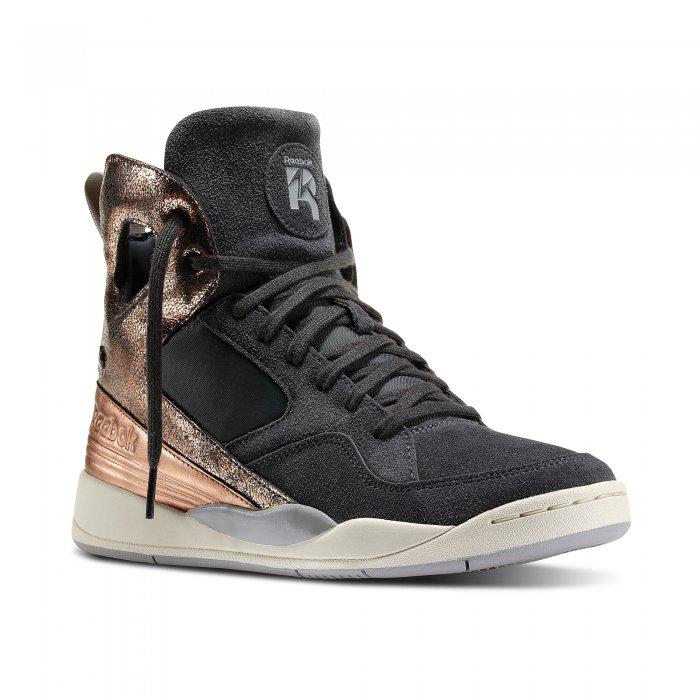 Rewelacyjne buty damskie Reebok Classic w kolorze ciemno szaro-złotym. Obuwie klasyczne z kolekcji Alicia Keys, idealne do użytku